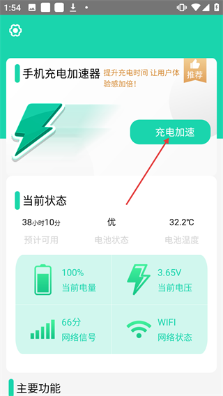 1、在手机充电加速器首页点击【充电加速】,进入充电加速功能页面。