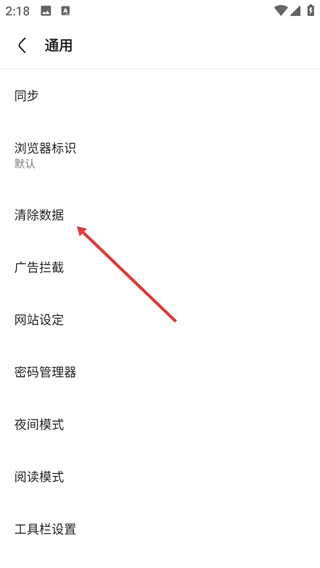 3、在通用设置页面点击【清除数据】选项,弹出清除数据选择框。