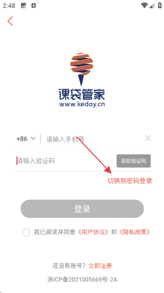2、在登录页面,点击【切换到密码登录】,进入密码登录页面。