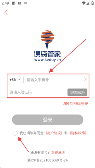 3、在登录页【输入信息,勾选协议】后,准备登录。
