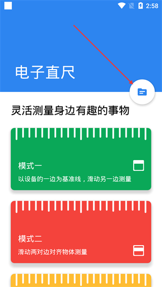 1、在【电子直尺】主界面点击右上角记录图标,进入测量记录页面。