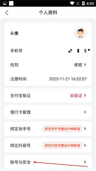 4、在账号与安全页面点击“注销账户”,即可进行账户注销。