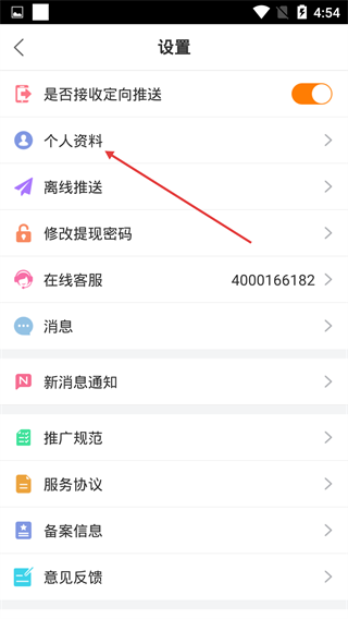 2、在设置页面点击“个人资料”,进入个人资料页面。