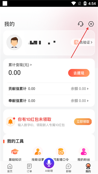 1、在“我的”页面点击右上角设置图标,进入设置页面。