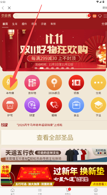 1、在首页点击“本命佛”图标进入商品分类浏览页。