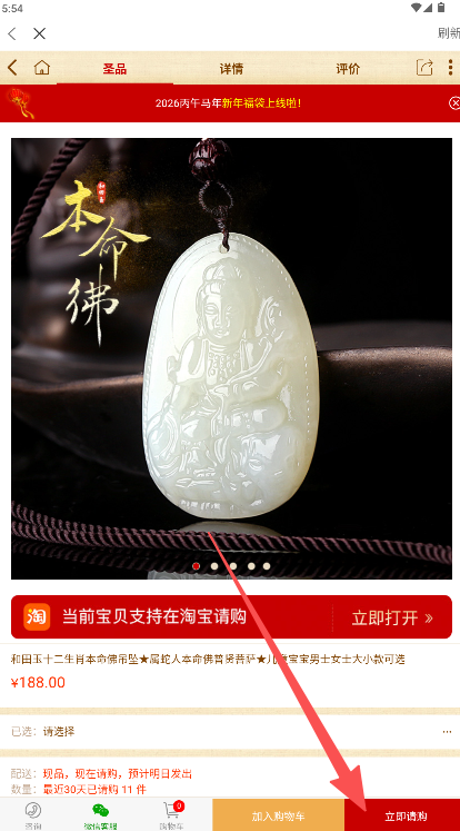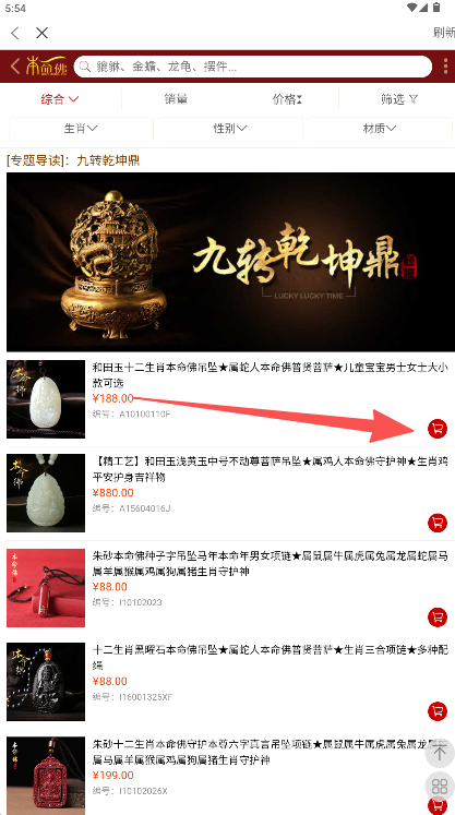 2、在商品列表选择目标商品如“和田玉十二生肖本命佛吊坠”查看详情。
