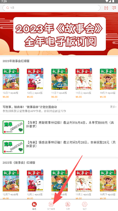 3、界面设计突出品牌特色,采用红色主色调与简洁布局强化《故事会》经典品牌的辨识度。