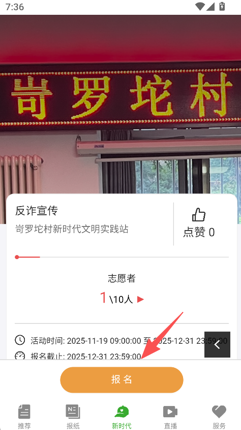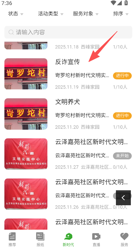 2、在志愿活动列表中,选择反诈宣传类活动。