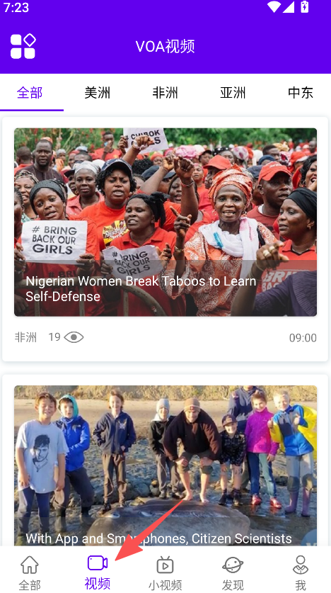 1、提供多地区视频学习功能,用户可选择美洲、非洲等地区视频,拓展英语听力与全球视野,功能实用。