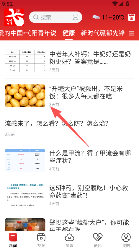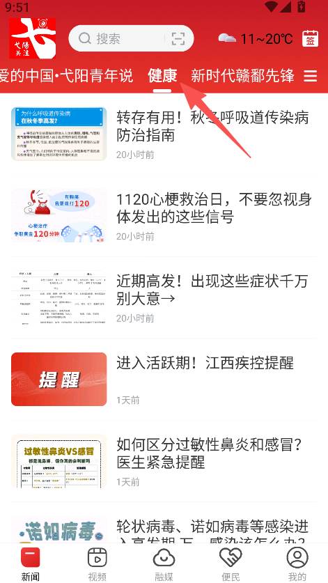 3、板块设计清晰,健康、新闻、视频等板块明确,操作路径简单,方便用户快速获取健康与本地资讯。