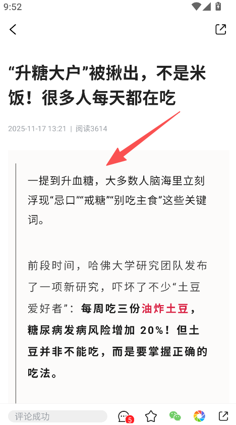 2、内容呈现直观,健康资讯以图文形式讲解,如升糖食物分析,易于理解,亮点突出。