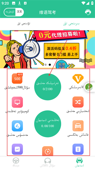 1、软件充分考虑维吾尔语使用者的学习需求,界面设计符合使用习惯,是维语学员备考驾照的理想选择。