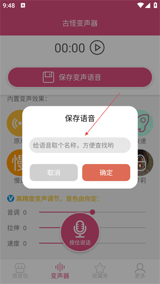 3、录制完成后点击【保存变声语音】,在弹窗中输入语音名称,点击【确定】保存。