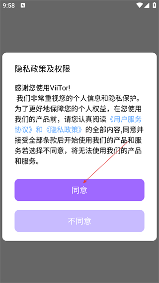 1、阅读【隐私政策及权限】内容后,点击【同意】按钮,进入主界面。