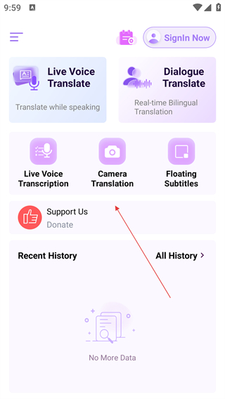 2、提供文字输入、语音对话与相机取词三种翻译模式,可根据不同使用场景选择最适合的翻译方式进行操作。
