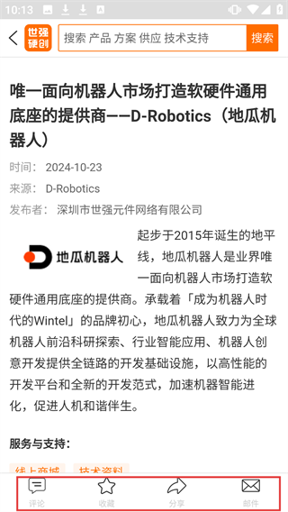 4、在品牌详情页底部可进行评论、设置、分享、邮件等操作。