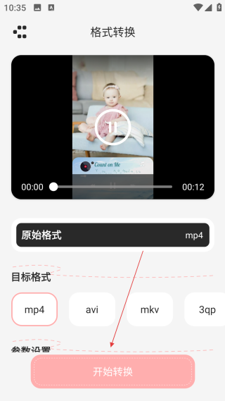 4、在格式转换页,点击【开始转换】,即可完成mp4视频格式的转换。