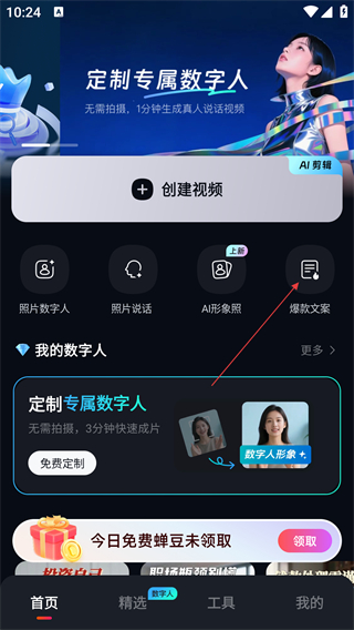 1、在主界面点击【爆款文案】选项,进入爆款文案生成的功能页面。