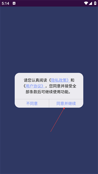 1、阅读《隐私政策》和《用户协议》后,点击【同意并继续】。