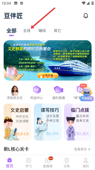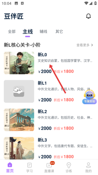 1、在豆伴匠首页,点击【主线】,进入主线课程的选择展示页面。