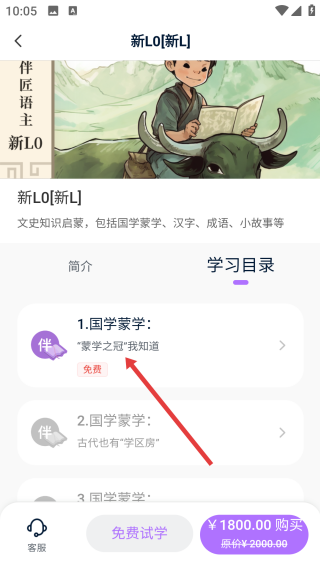 3、在课程详情页,点击【免费试学】,进入课程的学习内容体验界面。
