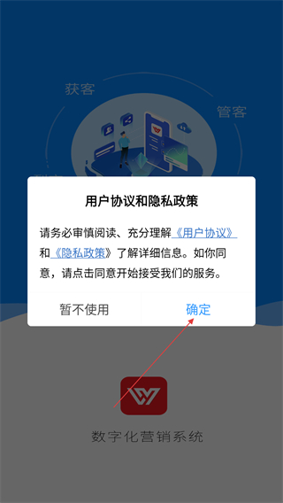 1、在弹出的【用户协议和隐私政策】弹窗中,点击【确定】按钮。