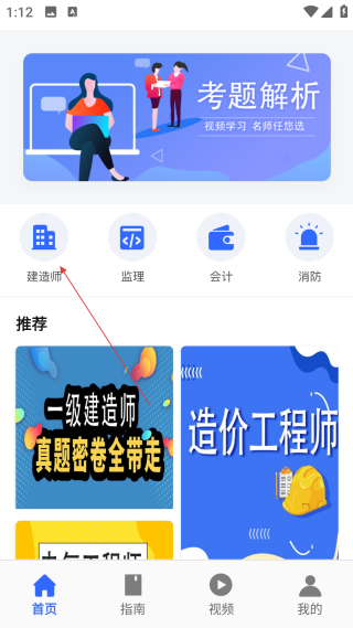 1、在首页,点击【建造师】分类,进入建造师相关的学习资料页面。