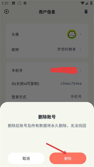 4、在删除账号弹窗中点击【删除】按钮,完成账号注销操作。