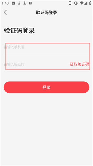 3、在验证码登录界面输入手机号并获取验证码。
