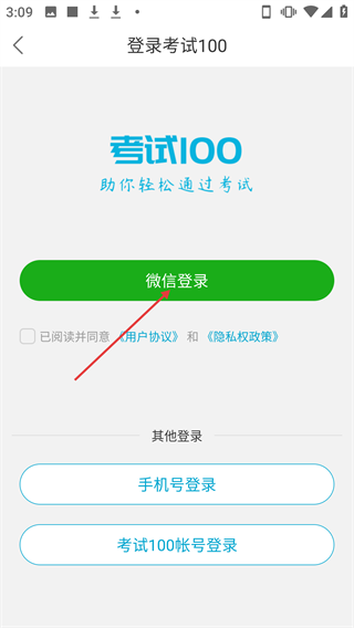 4、在登录界面勾选协议后,点击【微信登录】完成登录即可开始练习。