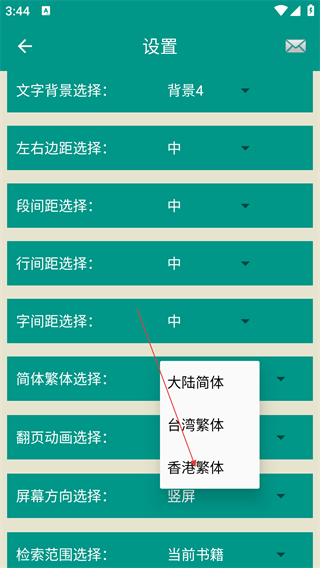 3、在设置界面,找到“简体繁体选择”选项,点击后选择“香港繁体”。