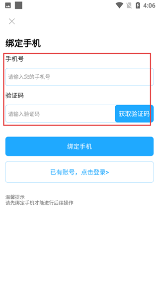 4、在绑定手机页面输入手机号、获取并输入验证码,点击【绑定手机】完成操作后即可继续购买流程。