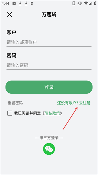 3、在登录页面点击【还没有账户?去注册】进入注册页面。