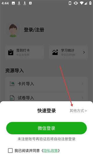 2、在登录弹窗中点击【其他方式】进入账号密码登录页面。