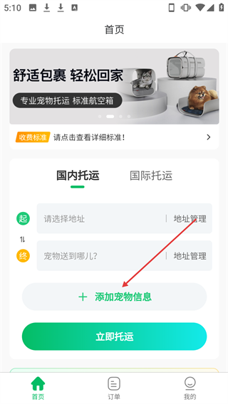 5、支持在线添加宠物品种、体重、健康状况等信息,自动关联对应托运手续,简化信息填写与管理流程。