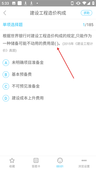 4、进入题目页面后,开始作答建设工程造价构成的单项选择题。