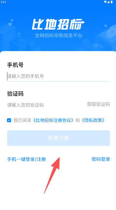 1、在登录注册界面选择“免费注册”完成账号注册。