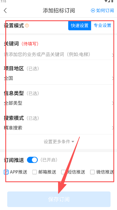 2、订阅机制灵活,允许依据关键词、行业类别及地域范围进行组合设置,实现信息精准筛选。