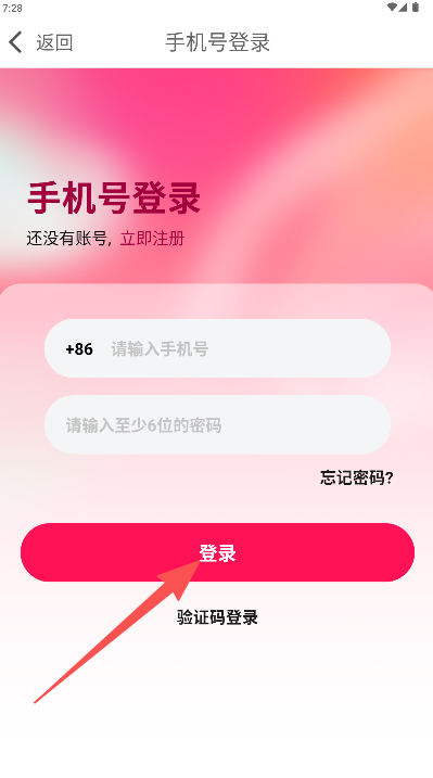 1、打开软件进入登录页,输入手机号与密码完成账号登录。