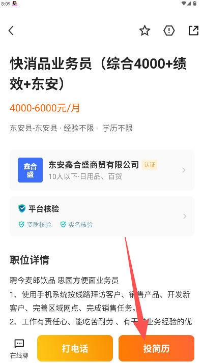 3、在职位详情页查看具体信息后,点击“投简历”完成简历投递。