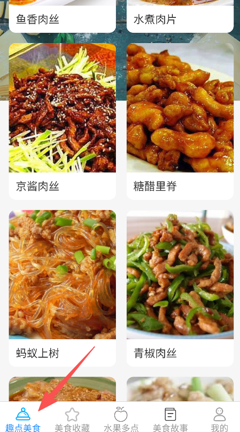 2、点击美食收藏,将喜欢的菜品保存,便于后续学习烹饪。