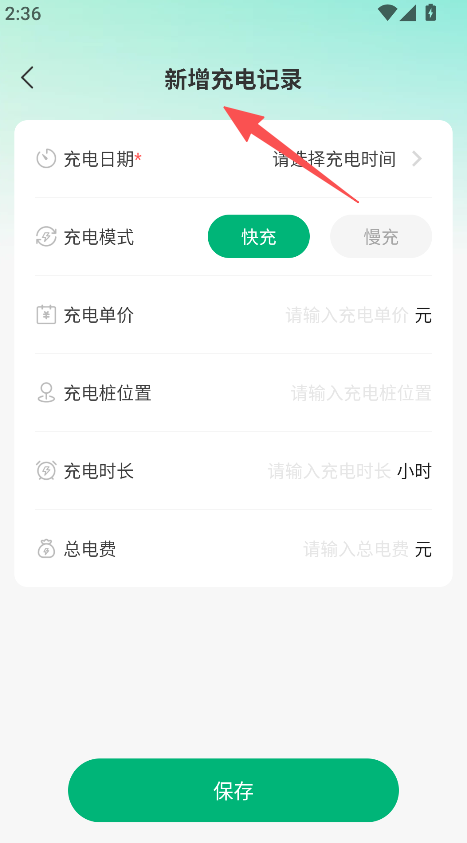 3、在记录板块,新增充电记录,填写充电日期、模式、单价等信息并保存。