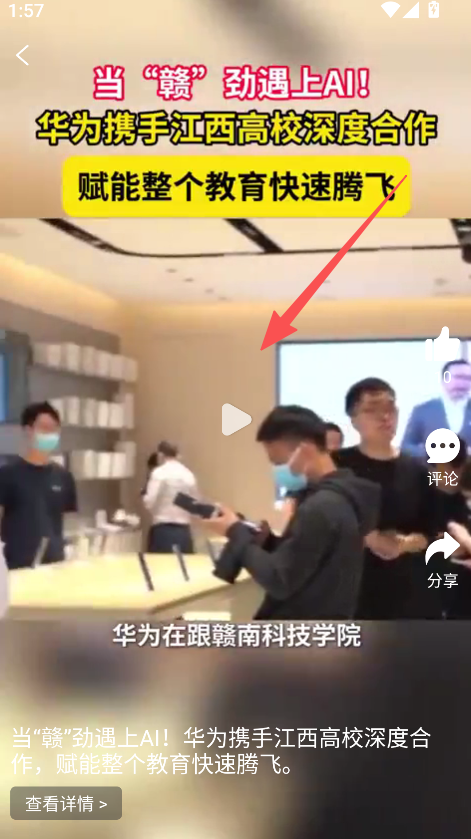 2、选择感兴趣的视频(如华为与江西高校合作),点击播放,观看详细内容。