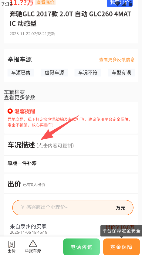 2、车源信息透明,车况描述详细,还有举报车源功能,保障用户交易安全,降低购车风险。