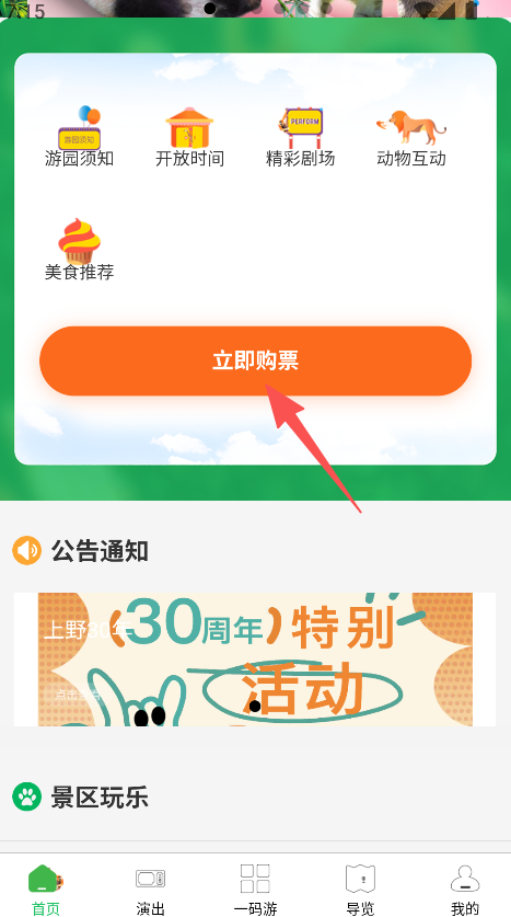 3、查看公告通知、景区玩乐板块,获取游园资讯,提升游园体验。