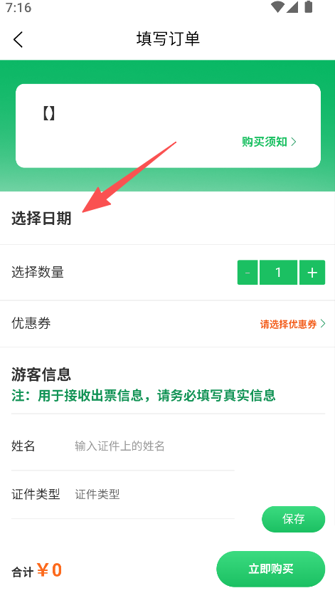 2、选择动物互动乐享套票等,进入填写订单,选择日期、数量,填写游客信息。