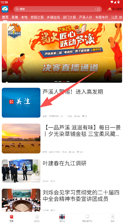 1、在首页信息流中找到并点击标题为“芦溪人警惕!进入高发期”的新闻条目。