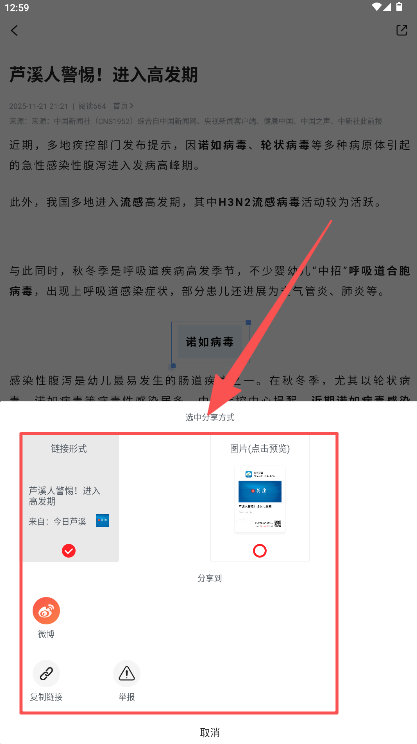 3、在弹出的分享菜单中选项即可生成并预览分享。
