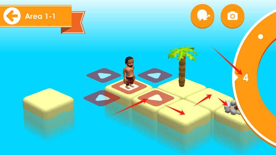 3、游戏中,这里数字是4,表示要4个步骤到达终点。