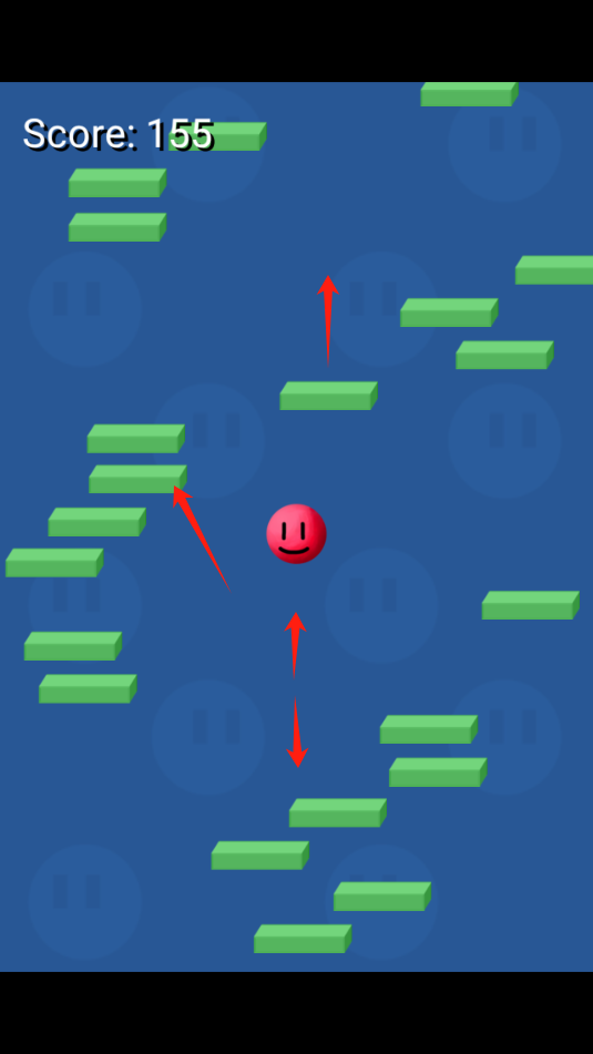 2、游戏中,利用手机的重力系统控制小球的跳跃方向。